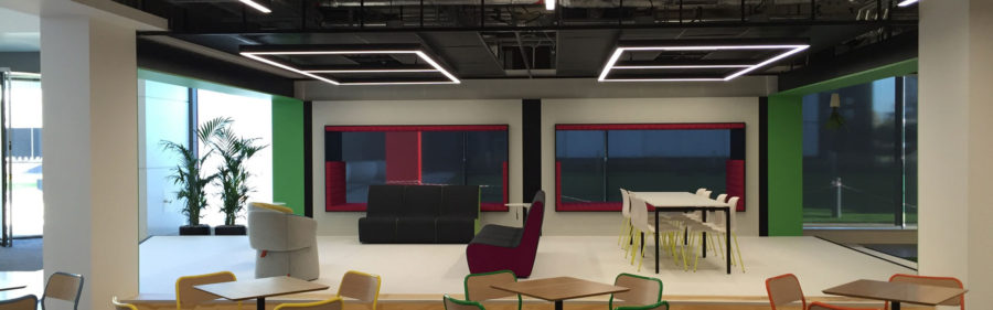 Refurbishment of this Web Hosting companies office in Middlesex used our SLOT50 and SLOT10 system in various shapes and configurations.